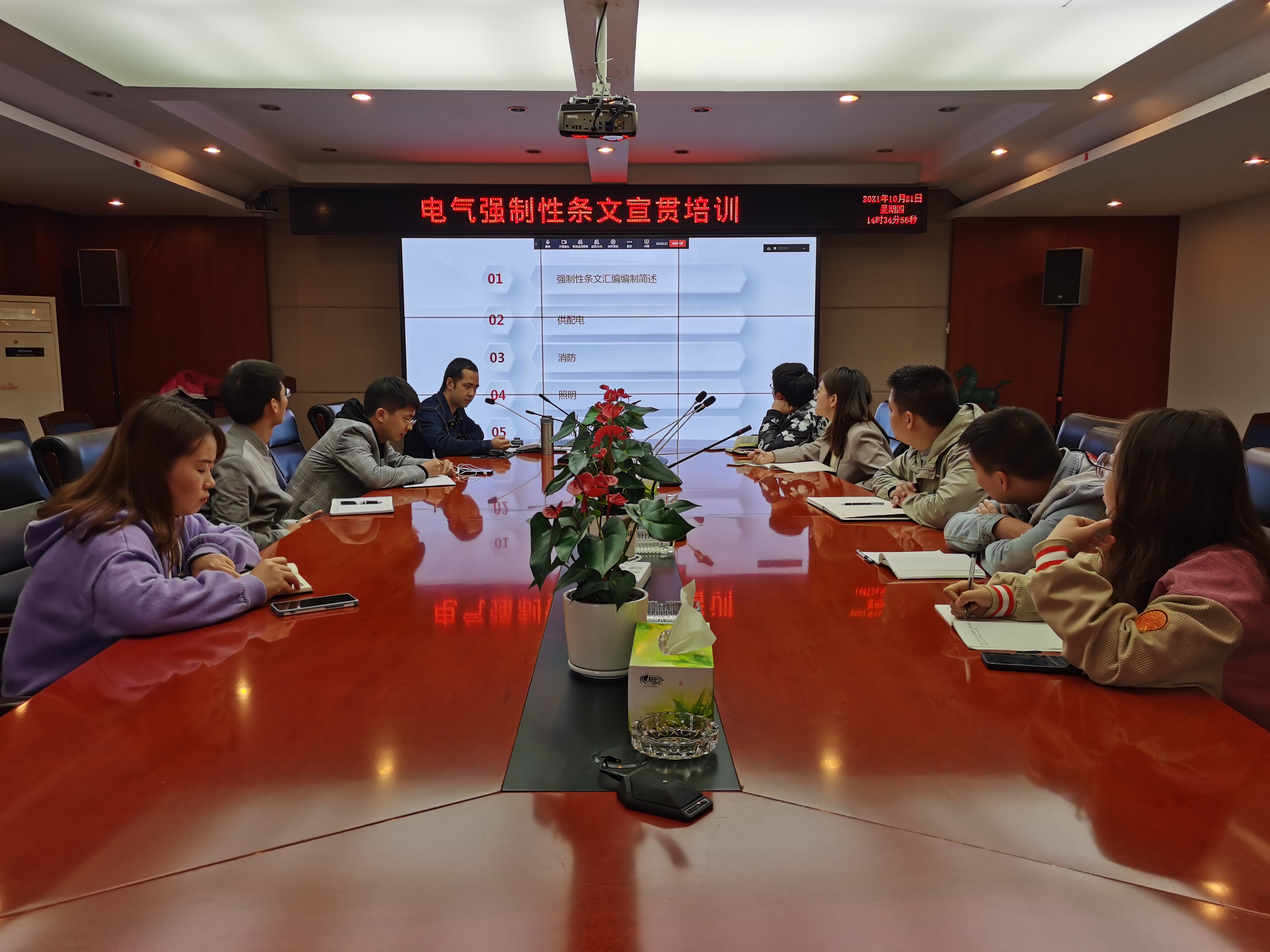为增强各专业技术人员对强制性条文的重视程度,帮助大家更好地熟悉、理解和掌握强制性条文,在工程设计中更好地贯彻执行,进一步提升公司产品的质量,j9.com学院联合科技质量部策划组织开展“强条宣贯”专题系列活动。2021年10月21日下午14:30,强条宣贯系列活动第一期——电气强制性条文问题分析交流在公司7楼会议室举行,培训以现场+钉钉视频的方式举行,集团各业务区电气专业10余人参加了本次培训。